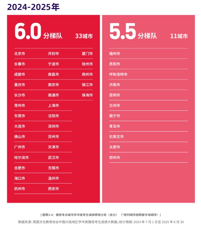 报告显示,2024-2025年度,持中国大陆护照的学术类雅思考生平均成绩为 5.9分,在全球参与排名的国家和地区中位列第35位。