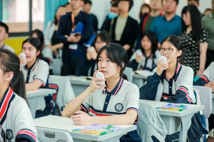 这是在第83届中国教育装备展同期的重庆两江新区“智慧校园行”系列活动中,众多教育行业参观者在西大附中星辰学校见到的一幕。在整个参观行程中,学校校长谭中胜介绍了涉及多个学科的智能化课堂建设。