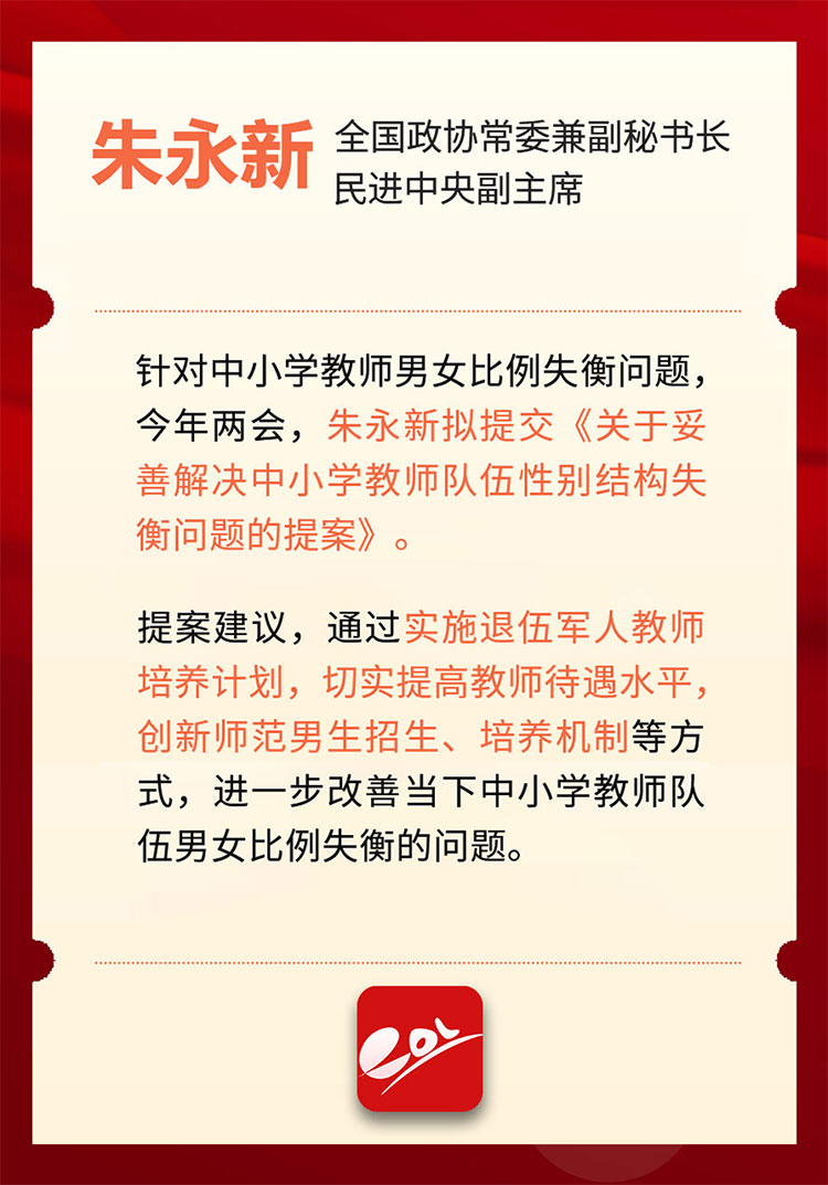 建议实施退伍军人教师培养计划 增加中小学男教师比例