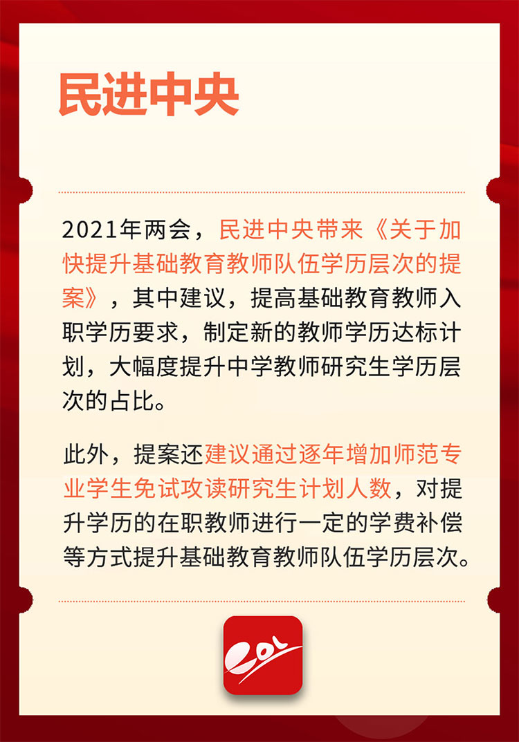 今年两会,民进中央带来《关于加快提升基础教育教师队伍学历层次的提案》。