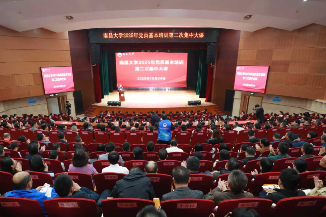 10月26日,南昌大学举办2025年党员基本培训第二次集中大课暨全校领导干部(扩大)会议,深入学习贯彻习近平新时代中国特色社会主义思想,传达学习党的二十届四中全会精神、全省领导干部会议精神,集中学习由教育部党组书记、部长怀进鹏主讲的《深入学习贯彻习近平总书记关于教育的重要论述 以教育强国支撑引领中国式现代化》辅导报告。