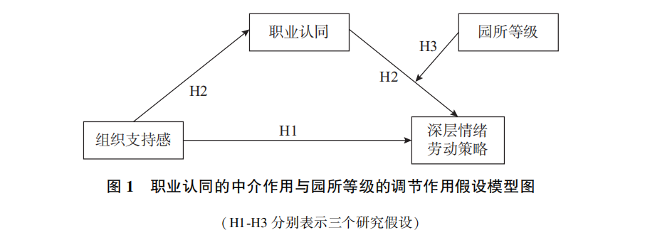 由此提出第二个研究假设H2:职业认同在组织支持感与幼儿园教师深层情绪劳动策略之间起到中介作用。