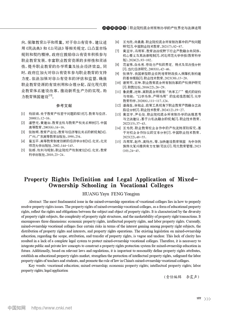 冯用军等:职业院校混合所有制办学的产权界定与法律适用