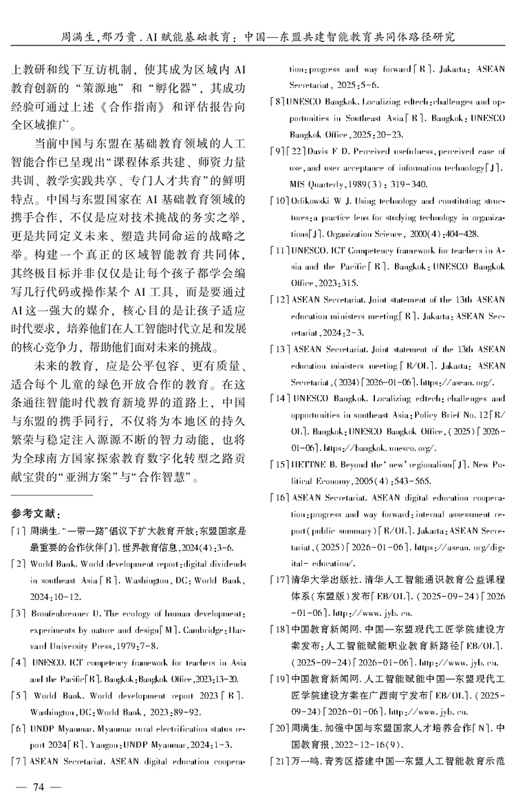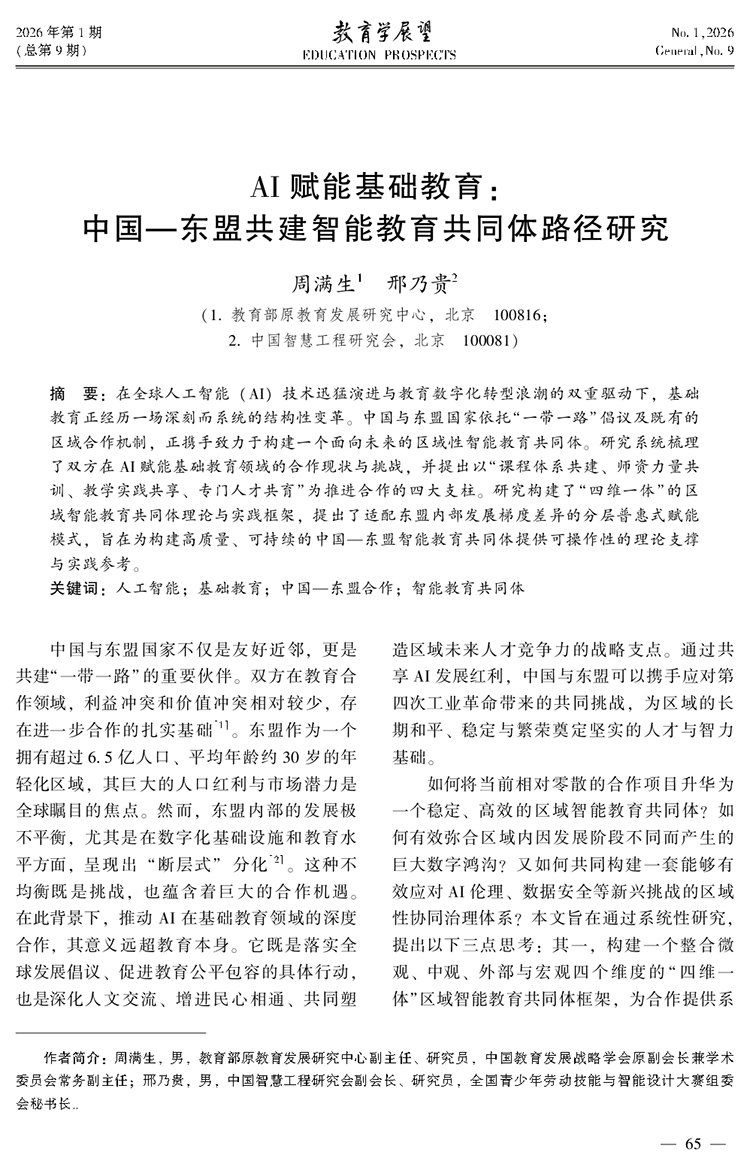 周满生 邢乃贵|AI赋能基础教育:中国—东盟共建智能教育共同体路径研究