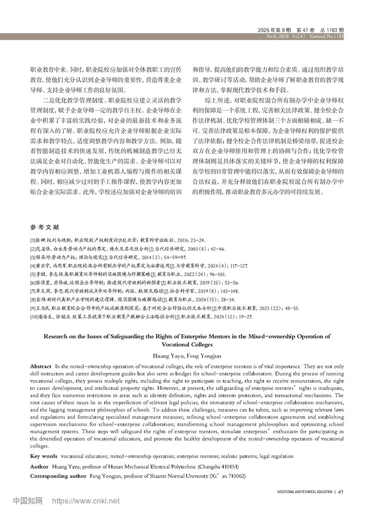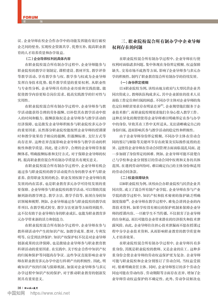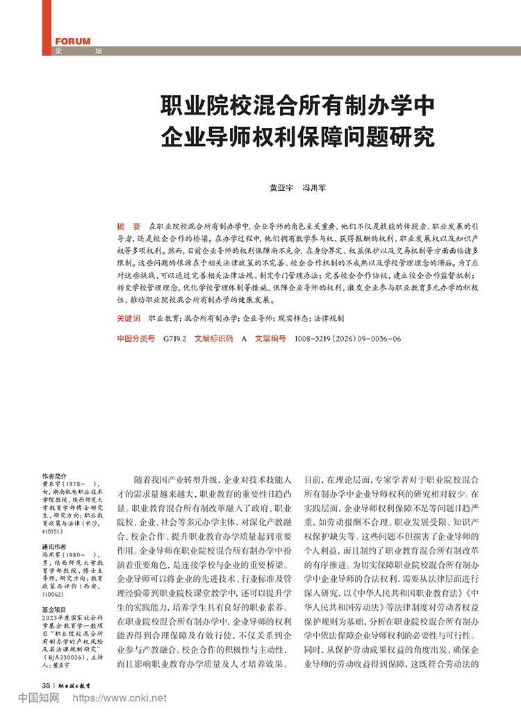 黄亚宇 冯用军:职业院校混合所有制办学中企业导师权利保障问题研究