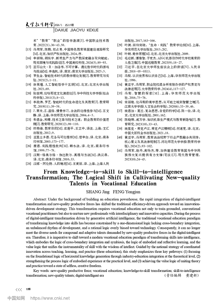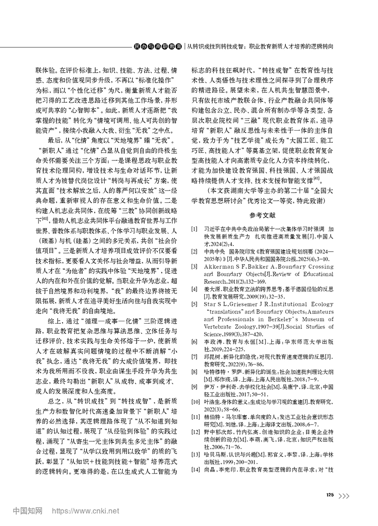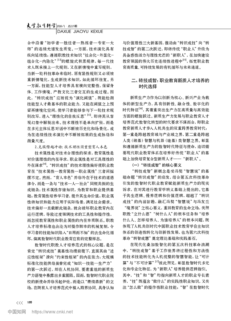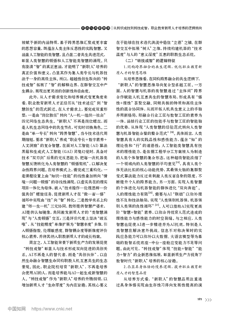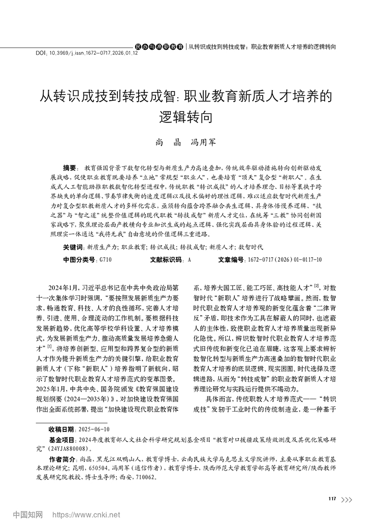 尚晶 冯用军|从转识成技到转技成智:职业教育新质人才培养的逻辑转向