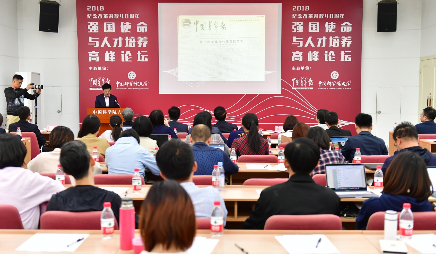 2018年10月9日,在我国迎来改革开放40周年之际,有着相似历史命运轨迹、共同人才培育使命的两家单位——复刊40年的中国青年报社和建校40年的中国科学院大学,联合主办“强国使命与人才培养高峰论坛”,共同探讨当下中国科教界最为关心的一个问题:总结我国高等教育恢复和发展40年历史,培养担当科技强国使命的时代新人。