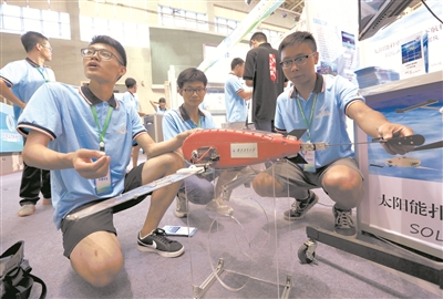 西北工业大学学生在介绍他们设计的作品。 杨雨 摄