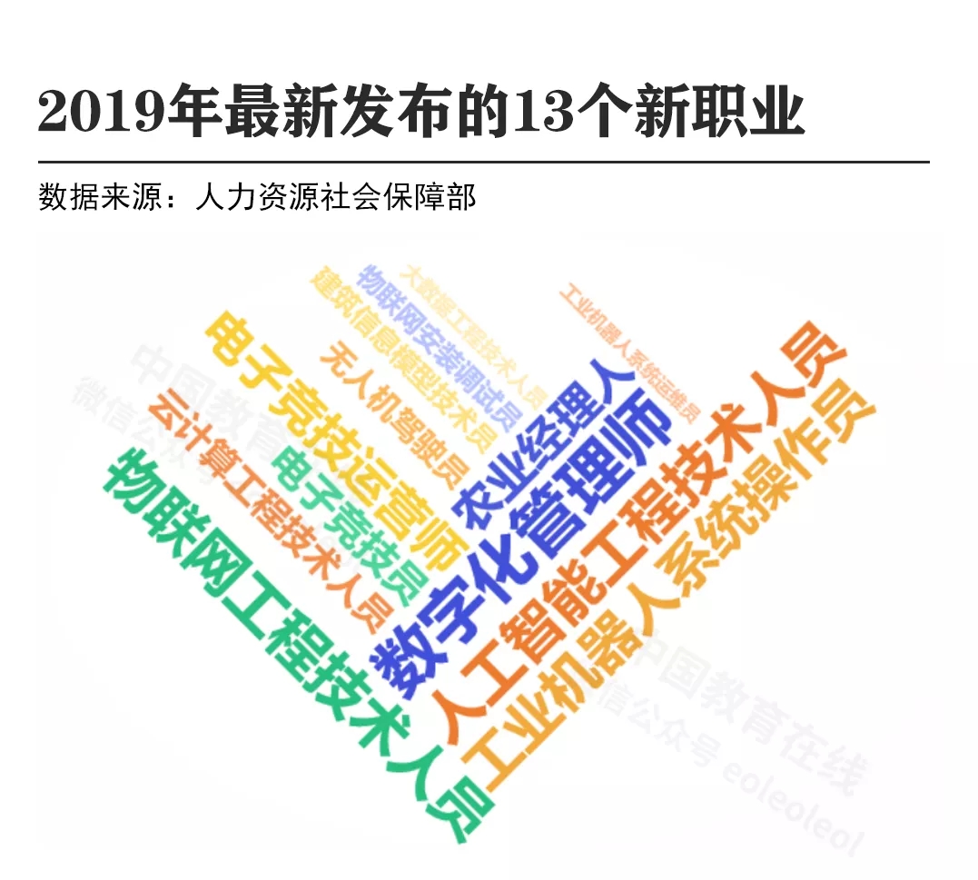2019年4月1日,人力资源社会保障部、市场监管总局、统计局正式向社会发布了13个新职业信息。其中就包含了与上文中提到的涉及交叉学科的人工智能、物联网、大数据和云计算等新兴产业相关的职业,这些产业已逐渐成为我国经济新的增长点,对从业人员的需求大幅增长。