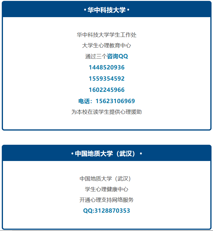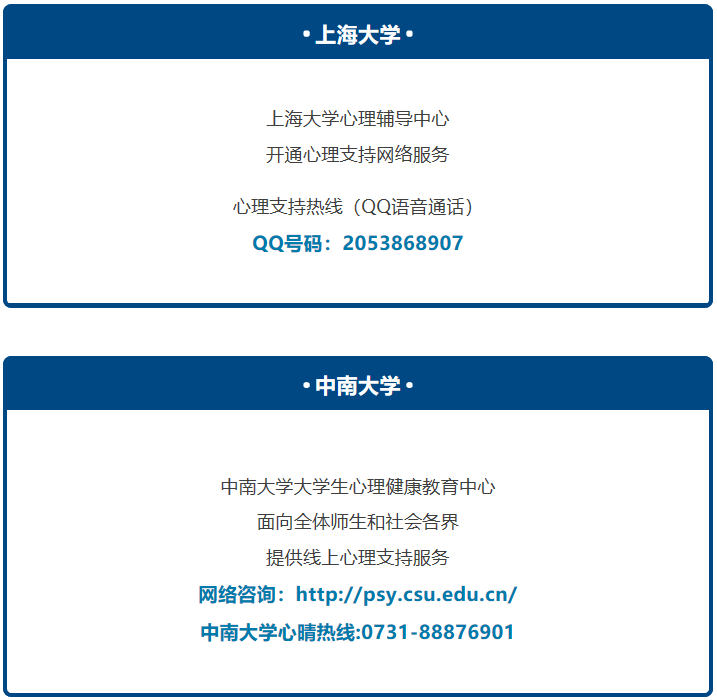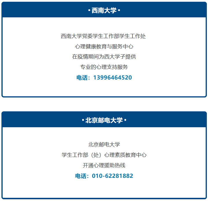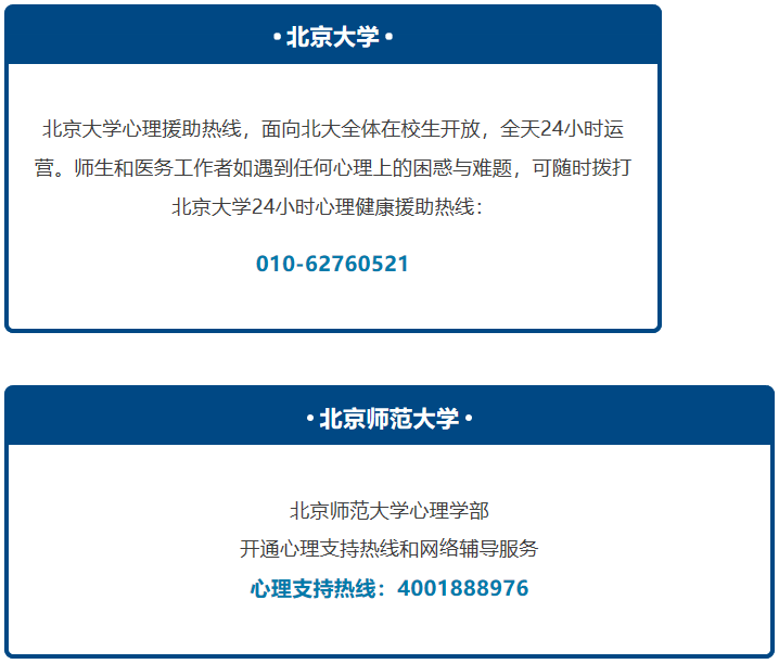 通知发出之后,全国各高校纷纷响应。今天带大家了解一下部分高校的心理支持热线电话,也请同学们放松心情,积极应对疫情。