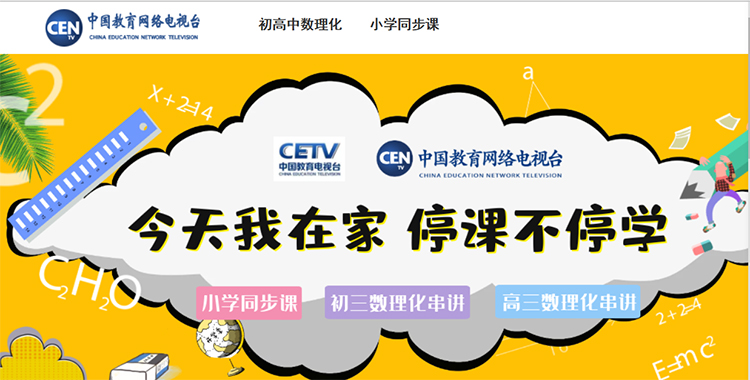 “停课不停学”,中国教育电视台精心筹划,疫情期间免费为全国小学生、初三、高三学生提供“教育部新编小学部编版教材同步课”;“初三数学、物理、化学串讲课”;“高三数学、物理、化学串讲课”。
