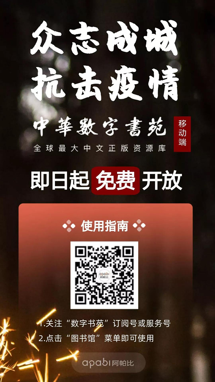 中华数字书苑是全球最大中文正版资源库,为了给广大群众提供生活便利,中华数字书苑联合多家出版社,从即日起至疫情结束,将免费开放移动端阅读服务。