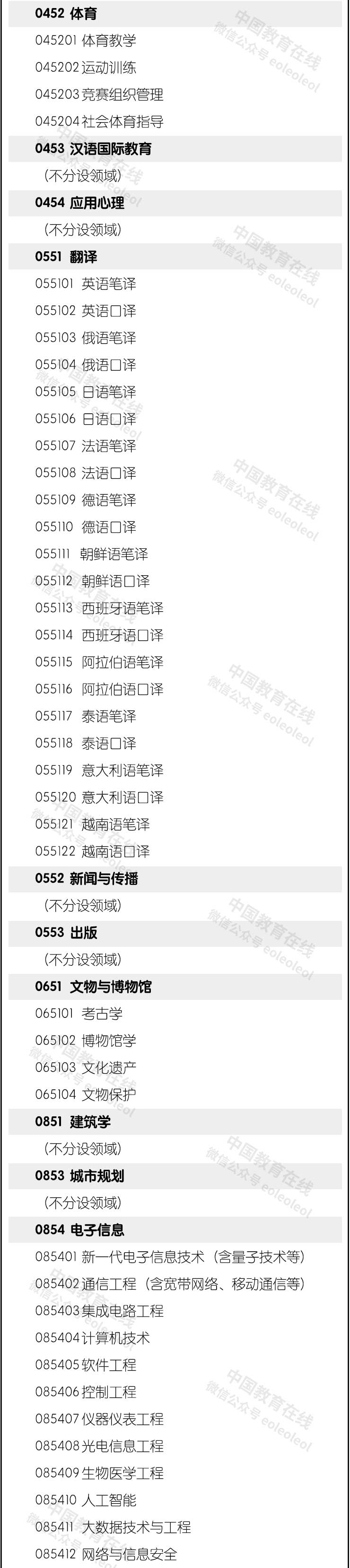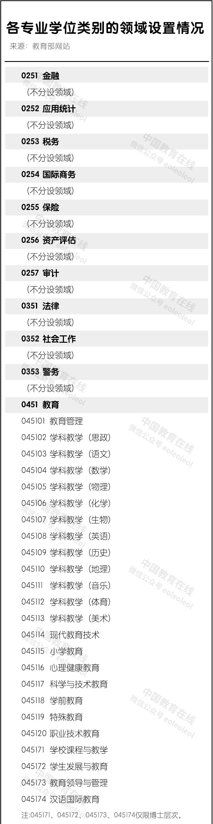 近年来,随着我国经济社会发展和产业转型升级,行业企业对高层次应用型人才的需求更加旺盛,专业学位研究生教育发展备受社会关注。为方便社会各界了解高校专业学位发展情况、学生报考、用人部门查询,在各专业学位教育指导委员会报送的基础上,国务院学位委员会办公室汇总形成了各专业学位类别的领域设置情况。