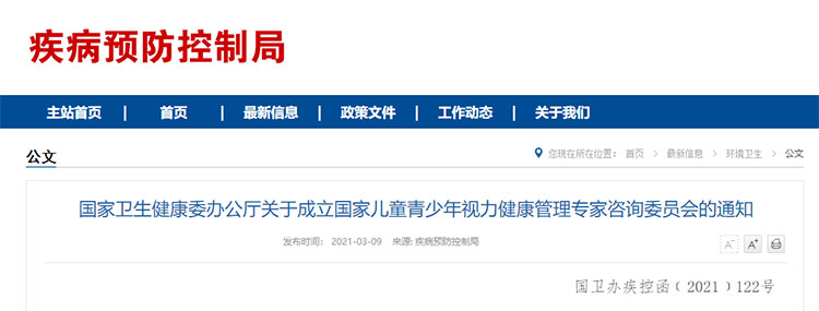 3月9日,国家卫健委网站发布关于成立国家儿童青少年视力健康管理专家咨询委员会的通知(下简称通知)。通知明确,为提高儿童青少年近视防控等视力健康工作管理决策水平,促进全国儿童青少年视力健康事业科学发展,国家卫生健康委成立国家儿童青少年视力健康管理专家咨询委员会。