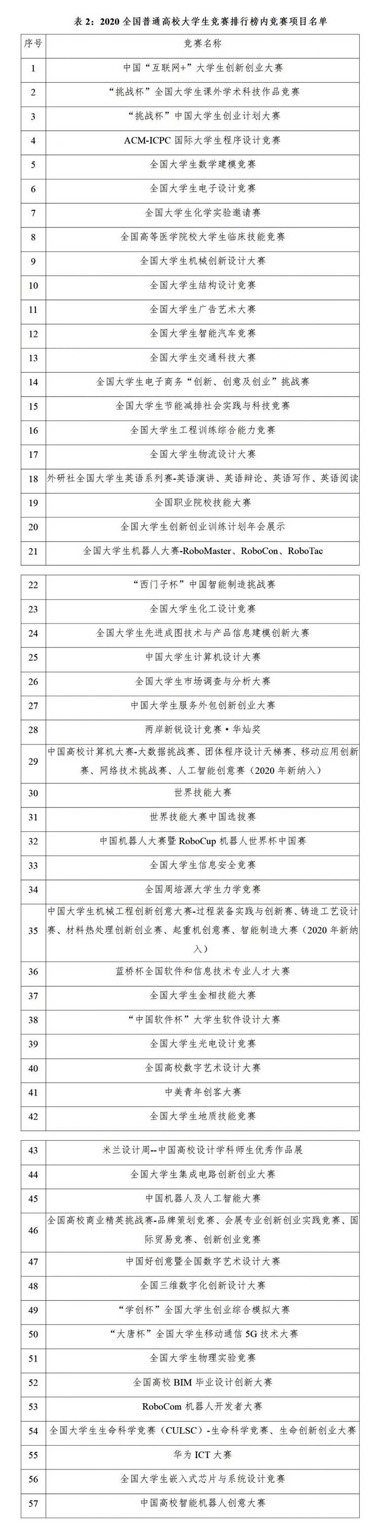 2020全国普通高校大学生竞赛排行榜发布