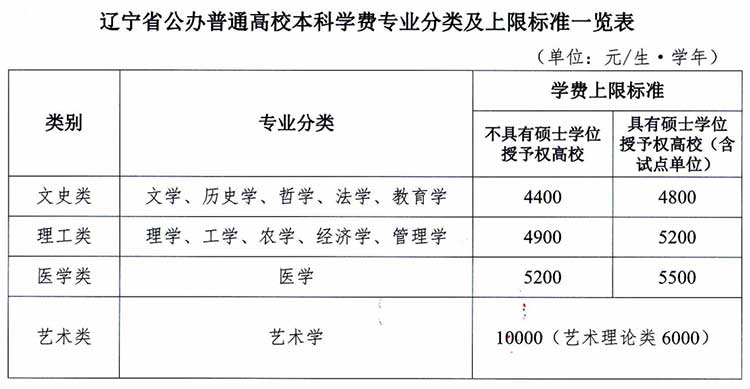 鲁迅美术学院、沈阳音乐学院、大连外国语大学、辽宁警察学院、示范性软件学院以及体育单招运动训练和外语专业,继续招待现行学费标准不变。