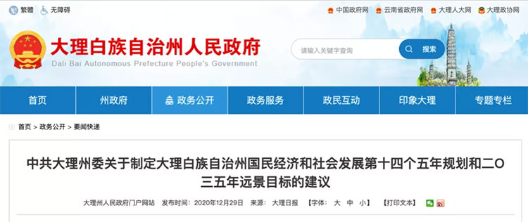 日前,云南省大理州人民政府官网发布《大理州国民经济和社会发展第十四个五年规划和二〇三五年远景目标纲要》,其中提到,要积极争取云南电影学院、云南省高原体育训练基地等文教体项目落户大理。