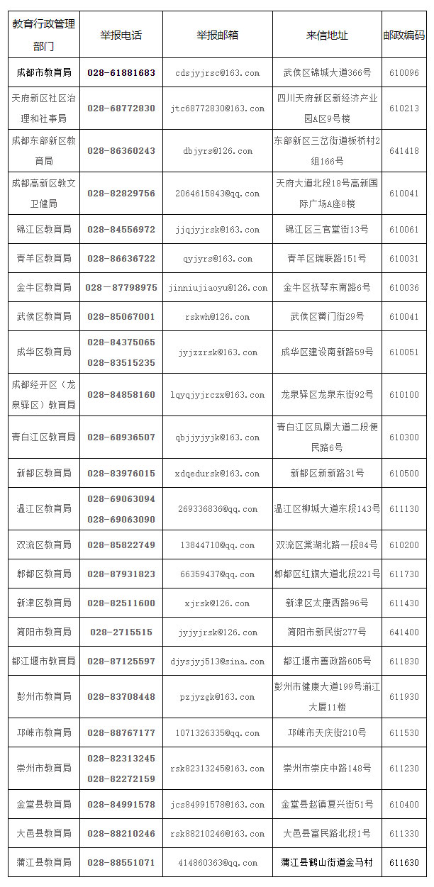 日前,成都市教育局网站已公布《成都市中小学教师有偿补课和教师违规收受礼品礼金问题监督举报电话、邮箱及来信地址》。