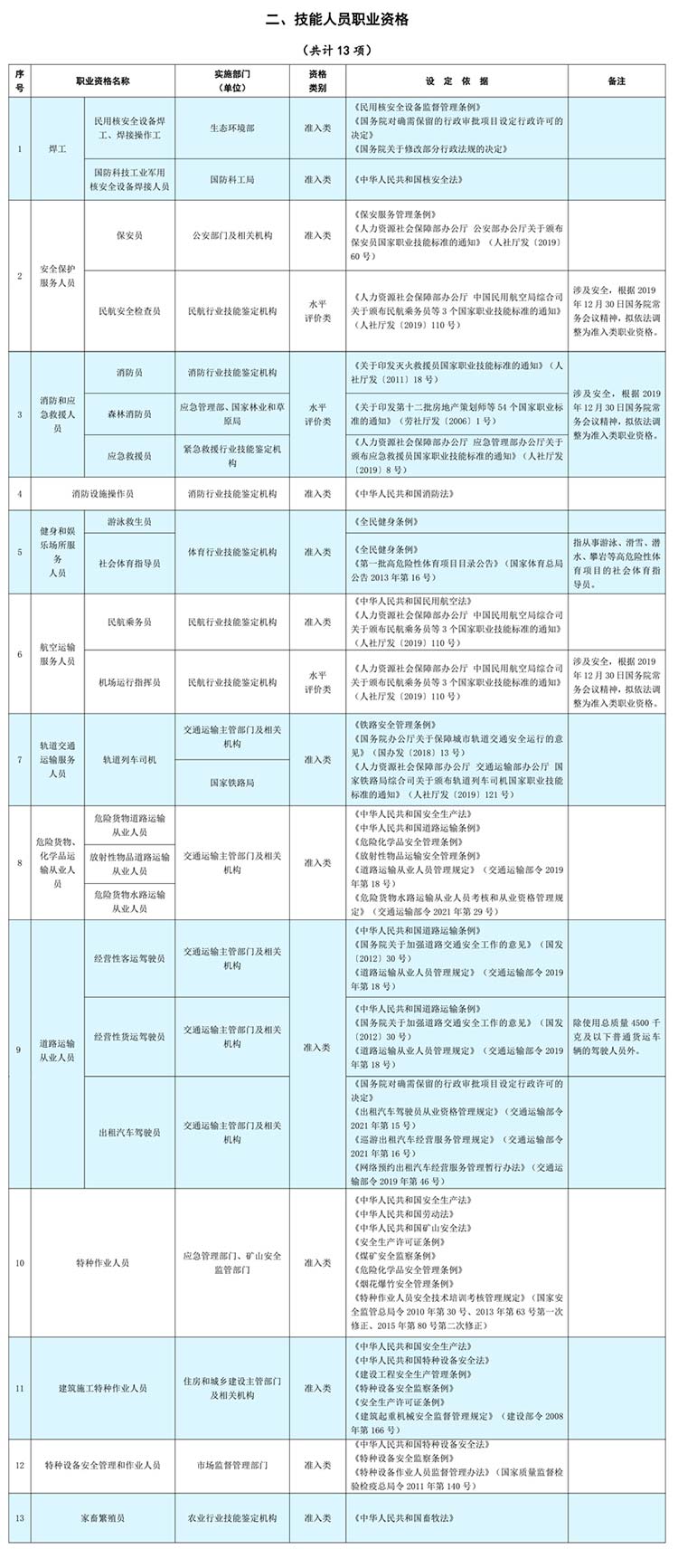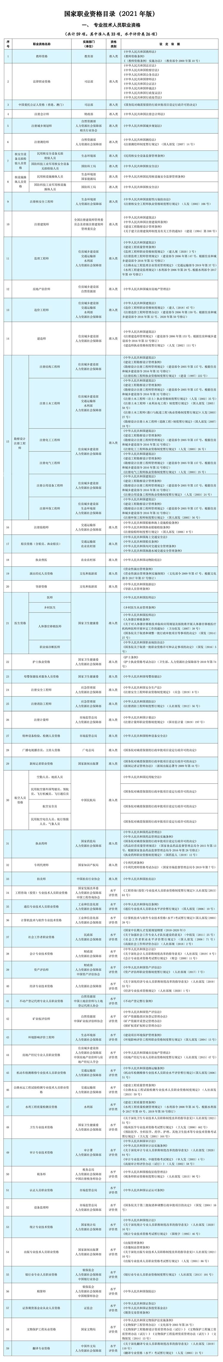 近日,经国务院同意,人力资源和社会保障部公布了2021年版《国家职业资格目录》。