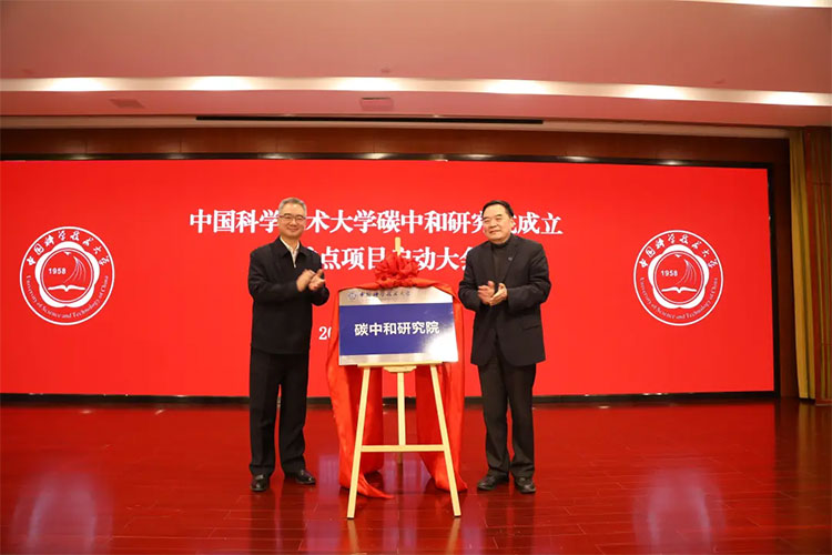 1月22日,中国科学技术大学碳中和研究院成立暨重点项目启动大会在东区师生活动中心举行。安徽省省长王清宪出席会议并讲话。校党委书记舒歌群、校长包信和出席会议。王清宪、包信和为碳中和研究院揭牌,并与研究院学术委员和合作单位代表座谈。