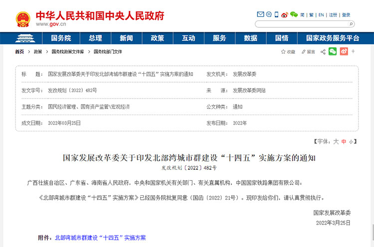 4月7日,国家发改委印发《北部湾城市群建设“十四五”实施方案》。