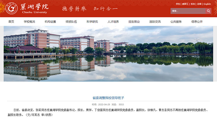 近日,安徽省多所高校领导班子进行调整,经安徽省委决定,黄友锐同志任皖西学院党委副书记、院长;张莉同志任巢湖学院党委副书记、院长;张立驰同志任淮北师范大学党委书记。