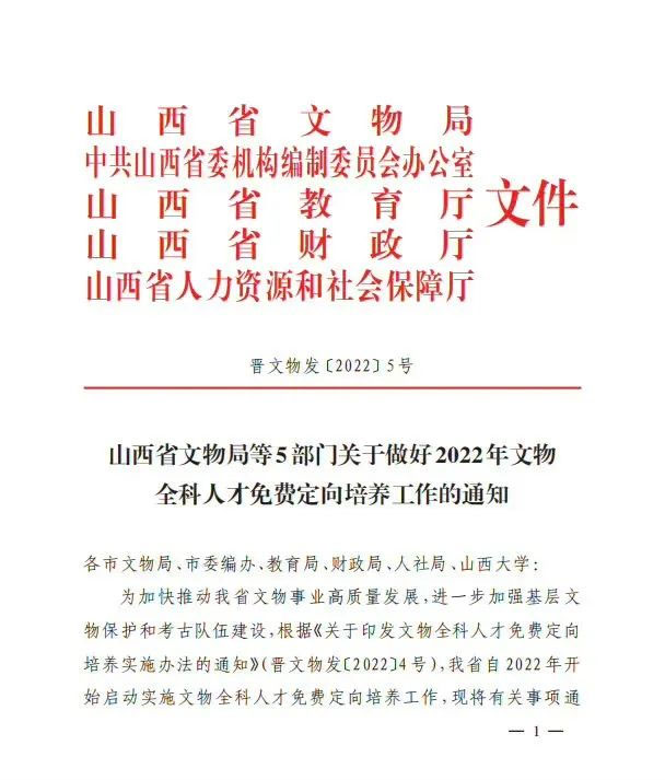 为进一步做好山西文物保护工作,缓解基层文物人才严重短缺的现状,近日,山西省文物局等5部门联合印发《文物全科人才免费定向培养实施办法》,明确了山西文物全科人才采取定向招生、定向分配、免费培养模式。