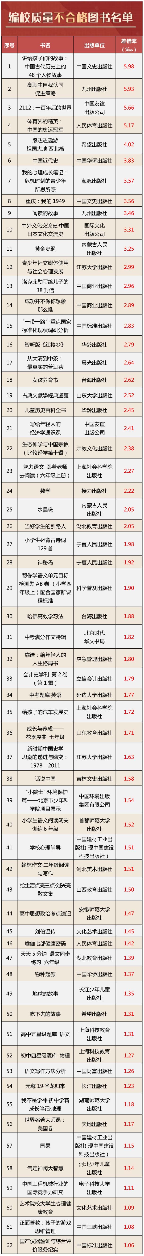 近日,国家新闻出版署通报“质量管理2021”编校质量不合格图书名单。通过重点对2020年以来出版的少儿图书、教辅材料等进行编校质量检查审核,认定其中62种图书不合格。