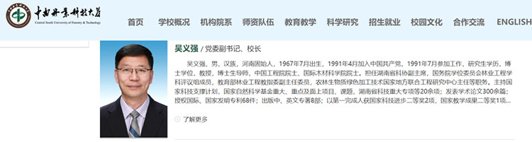 中南林业科技大学官网现任领导一栏显示,中国工程院院士吴义强已于今年10月起任中南林业科技大学党委副书记、校长。