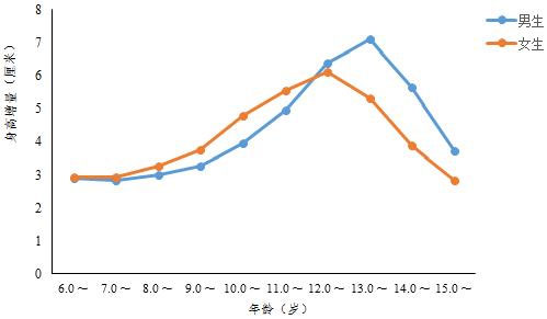 身高和体重是反映学生生长发育和营养状况的基础指标。十年来,各年龄段男女生的平均身高和体重水平逐年升高。其中,13岁的男生平均身高和体重增量最多,达到7.5cm和6.6kg;女生为12岁增量最多,身高和体重增量分别达到6.3cm和5.8kg,增长速度均高于同年龄段全国农村学生的平均水平。