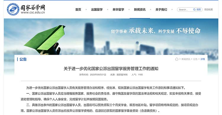 关于进一步优化国家公派出国留学服务管理工作的通知