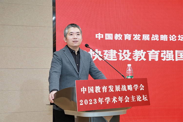 韩进会长在致辞中表示,我国已建成全世界规模最大的教育体系,在高质量发展的目标下,如何实现从传统国内生产总值(GDP)转化为绿色GDP,从人口资源红利转化为人力资本红利,如何为经济社会高质量发展提供源源不断的各级各类高素质人才,提升教育对高质量发展的支撑力、贡献力。这不仅是教育界需要回应的重大理论与实践课题,也是社会各界需要共同研讨回应的跨界性课题,更是立足系统性、全局性、战略性前沿的开放性课题。在全面关注探讨《教育强国建设规划纲要》研制的重要时刻,中国教育发展战略学会举办的“2023年学术年会活动季”更具有格外重要的意义。他介绍,为聚焦建设教育强国发展的战略性、全局性、前瞻性问题,发挥中国教育发展战略学会在国家教育发展战略方面的研究特色,聚集战略智慧、交流实践探索、分享学术成果,为加快推进教育现代化、建设教育强国提供智力支持与咨询服务,此次年会活动总体安排在往年基础上进行了优化扩展。一是开展三个月的学术活动季研讨;二是围绕经济社会发展重大需求,立足战略全局研讨教育未来;三是围绕教育战略的一些重大核心问题集中研讨攻关。