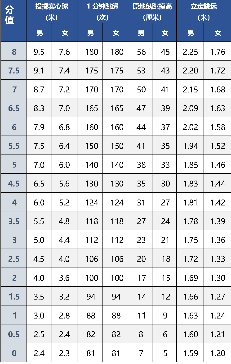北京市义务教育体育与健康考核评价现场考试项目评分标准(试行)