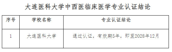 关于大连医科大学中西医临床医学专业认证结论的公示