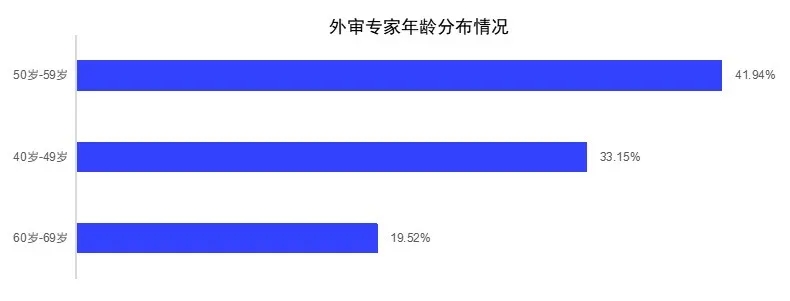《报告》指出,外审专家覆盖不同的学科背景、年龄段,群体构成具有多样性。《报告》统计,在年龄上,50~59岁的专家占比最高,达41.94%;40~49岁的专家占比其次,达33.15%;表明这两个年龄段是外审专家集中的主力人群,同时也反映出大部分外审专家的资历和评审经验相对丰富。此外,2678名外审专家来自97个一级学科、543个二级学科,在学科覆盖方面具有较好的代表性。可以看出,外审专家们覆盖不同的学科背景、学术能力及评价经验,系统可以更精准地根据各委托单位的评审要求,智能匹配评审专家,确保人才评价的多样性和包容性。