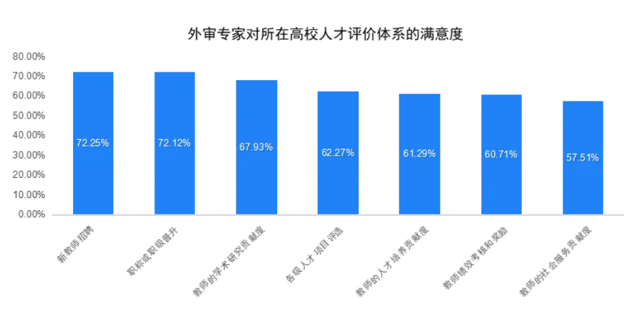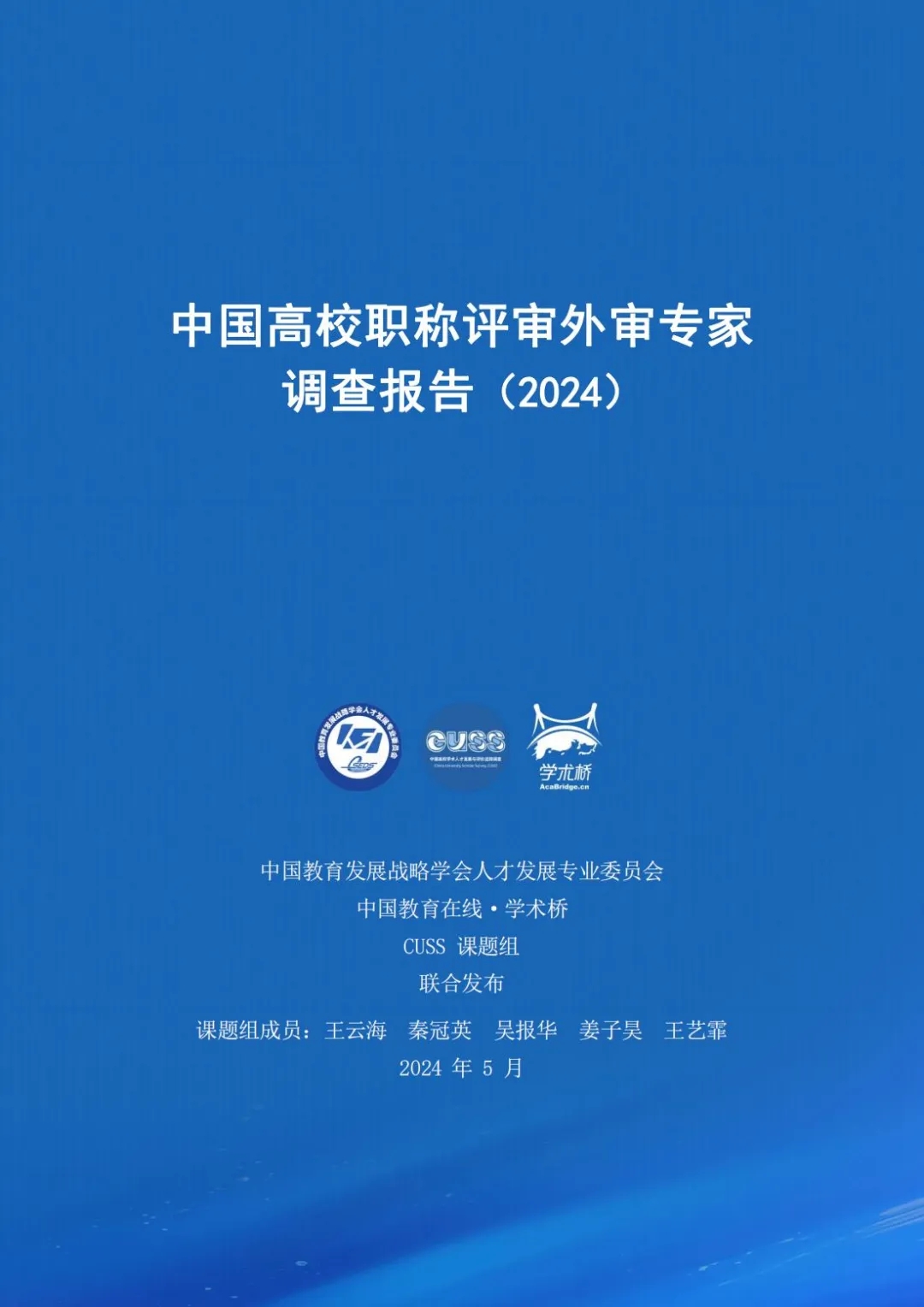 日前,中国教育发展战略学会人才发展专业委员会、中国教育在线·学术桥和《中国高校学术人才发展与评价追踪调查研究(CUSS)》课题组联合发布了《中国高校职称评审外审专家调查报告(2024)》(以下简称《报告)。报告显示,受访外审专家在学术界和科研领域具有较高的地位和影响力。外审专家对于第三方机构评审服务的保密性、公平性、满意度都显示出极高评价,其中“非常满意”、“比较满意”的占比合计达99%以上。