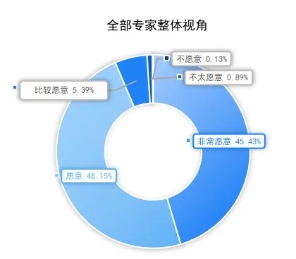 《报告》指出,外审专家非常愿意推荐所在单位外审需求采用第三方独立外审。调研发现,“非常愿意”与“愿意”推荐所在单位采用第三方独立外审两个高推荐意愿选项占比总和为93.58%。由此可见,高校评审工作中第三方评审的方式取得了较高的评价,给受访者们留下了良好的印象。