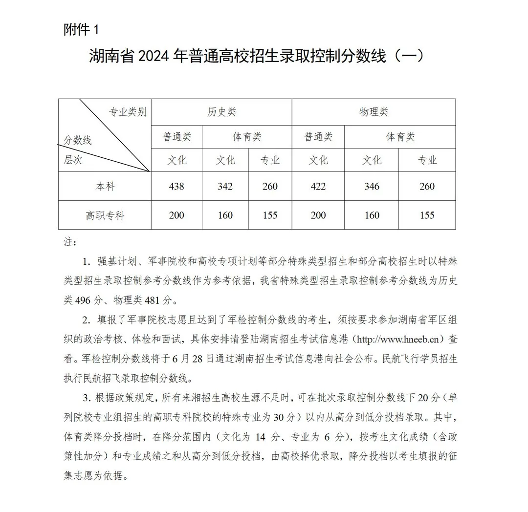 2024湖南高考分数线公布:本科批历史类438分,物理类422分