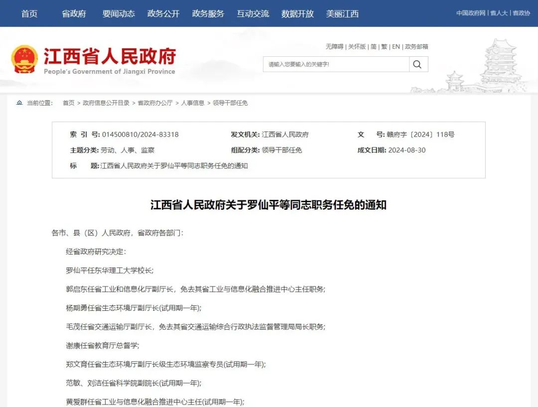 近日,江西省人民政府任免一批领导干部,其中涉及省教育厅和多所高校。