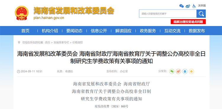 近日,海南省发展改革委、省财政厅、省教育厅印发《关于调整公办高校非全日制研究生学费政策有关事项的通知》(以下简称《通知》),明确提出,将各公办高校非全日制研究生学费标准的管理方式由政府定价调整为公办高校自主确定,同时对公办高校非全日制研究生学费管理调整工作提出具体要求,加强教育收费的监督和管理。