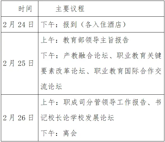 为深入学习贯彻党的二十届三中全会和全国教育大会精神,落实《关于深化现代职业教育体系建设改革的意见》,交流展示高职教育改革创新、服务经济社会和学生全面发展的经验成果,推动高职教育高质量发展,经研究,全国高等职业学校校长联席会议计划于2025年2月24日—26日在湖南长沙召开“贯彻落实全国教育大会精神,推进高职教育高质量发展”研讨会。现将会议有关事项预通知如下:
