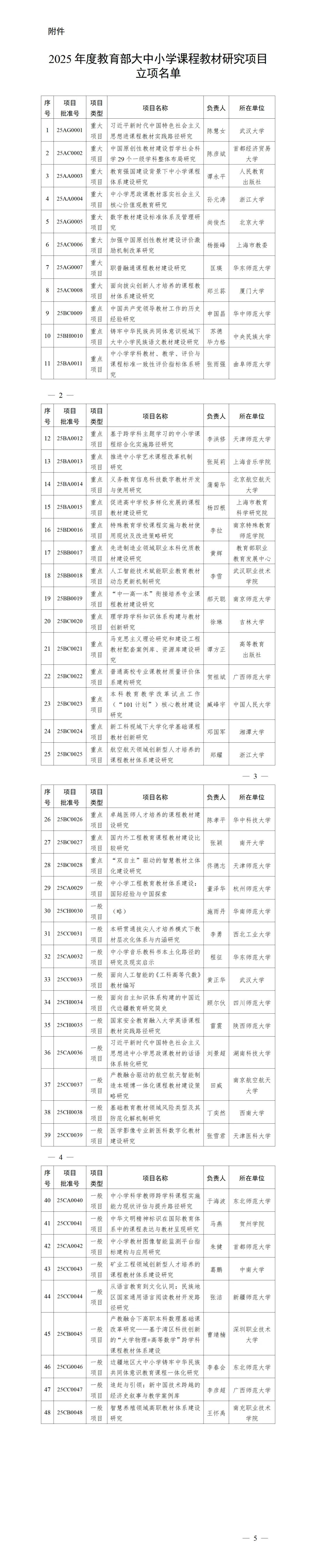 48项!教育部公布2025年度大中小学课程教材研究项目立项名单