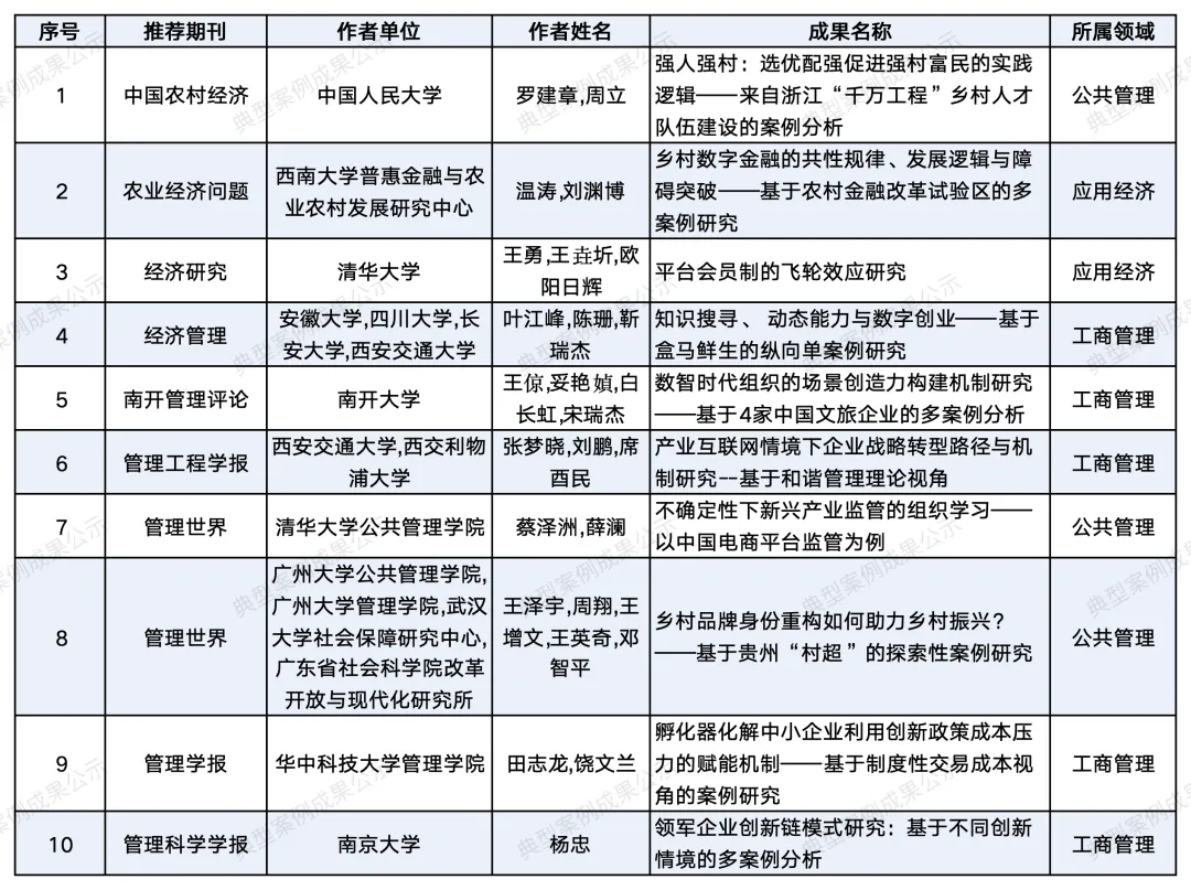 为进一步深入贯彻落实习近平总书记对哲学社会科学工作和研究生教育工作的系列重要指示精神,落实《面向2035高校哲学社会科学高质量发展行动计划》《关于深入推进学术学位与专业学位研究生教育分类发展的意见》等文件要求,更好发挥高水平案例成果示范引领作用,教育部学位中心持续开展典型案例成果遴选。本年度典型案例成果从2023年度主题案例和2024-2025年期刊联盟成员单位已发表案例研究成果中遴选产生。学位中心建立严格评议流程,经过“同行专家通讯评议”“案例专家委推荐评议”“案例专家委主任办公会审定”三级审核,遴选出20篇主题案例典型成果和10篇案例研究典型成果。现将遴选结果进行公示,公示期自2025年10月10日起至2025年10月16日止。如有异议,请在公示期内以邮件方式实名反映,并提供必要材料。联系电话:010-82378726联系邮箱:case@cdgdc.edu.cn