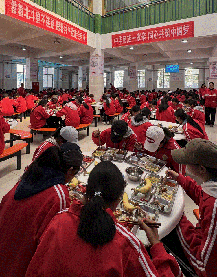 孩子住在学校,家长最不担心的就是饮食问题。在“三包”政策下,学校食堂免费日常供应肉蛋奶、蔬菜、水果,营养配餐不仅让学生吃得饱,而且吃得有营养。在“阳光课程”体系的浸润下,校园里的民族团结之花绚烂绽放:望果节上,各族师生手拉手共跳锅庄,欢声笑语洒满校园;课堂之上,藏浙合编教材融贯两地文化,让知识传递与情感交融同步发生;宿舍之中,那曲学子与拉萨学子互帮互助,结下超越地域的深厚情谊。
