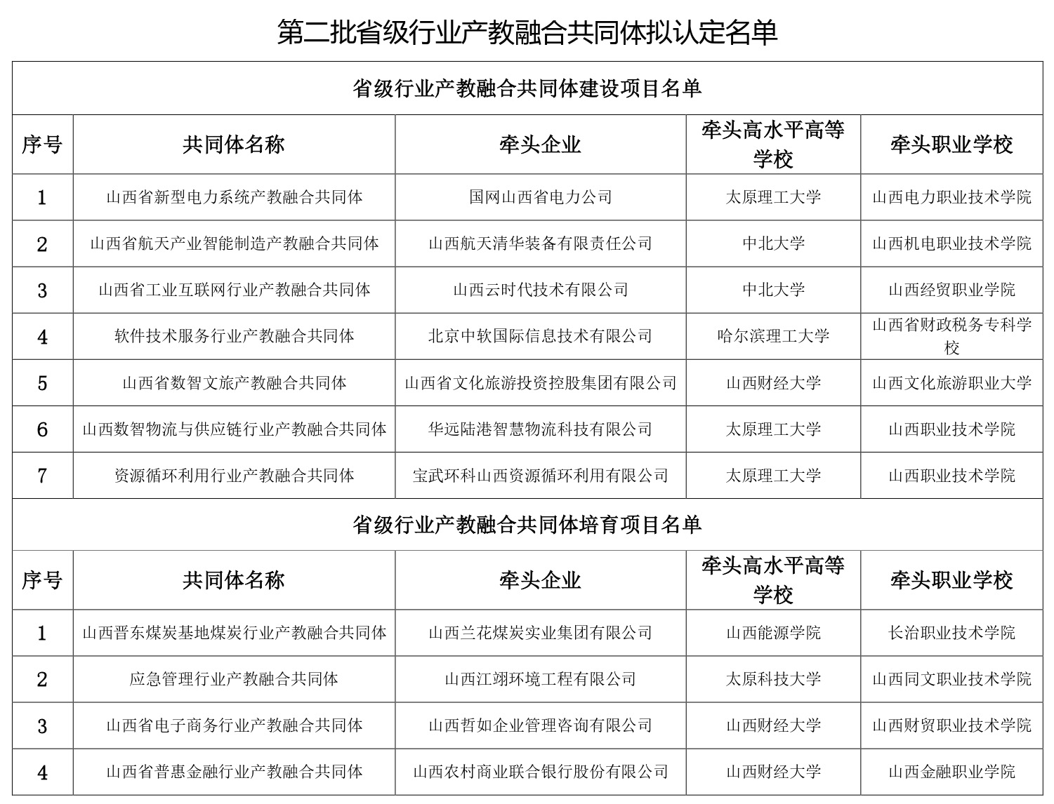 山西公示第二批省级行业产教融合共同体拟认定名单
