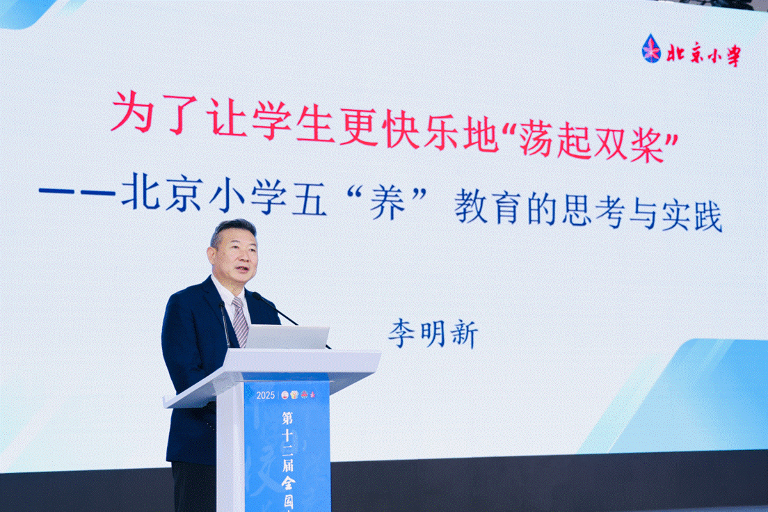 北京小学党委副书记、校长,北京小学教育集团总校长李明新做题为《为了让学生更幸福地荡起双桨——北京小学“五养”教育的思考与探索》的主旨报告,详细介绍了学校以“五养”教育理念创新育人实践:慢养尊重规律,顺养因材施教,牧养激发自主,素养重视养成,调养促进身心和谐,落实五育融合,构建适合学生幸福成长的生态教育,培养全面发展、人格健全的时代新人。