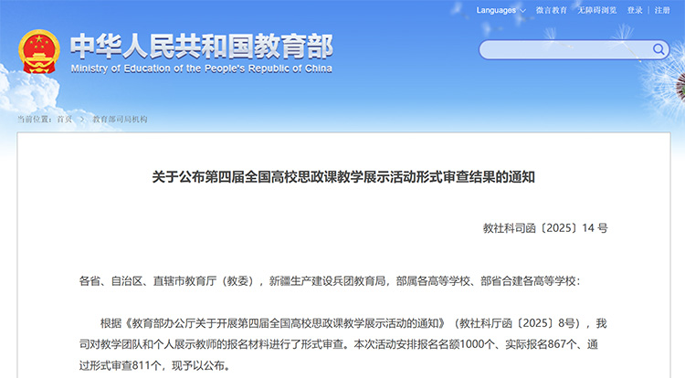 第四届全国高校思政课教学展示活动形式审查通过名单公布