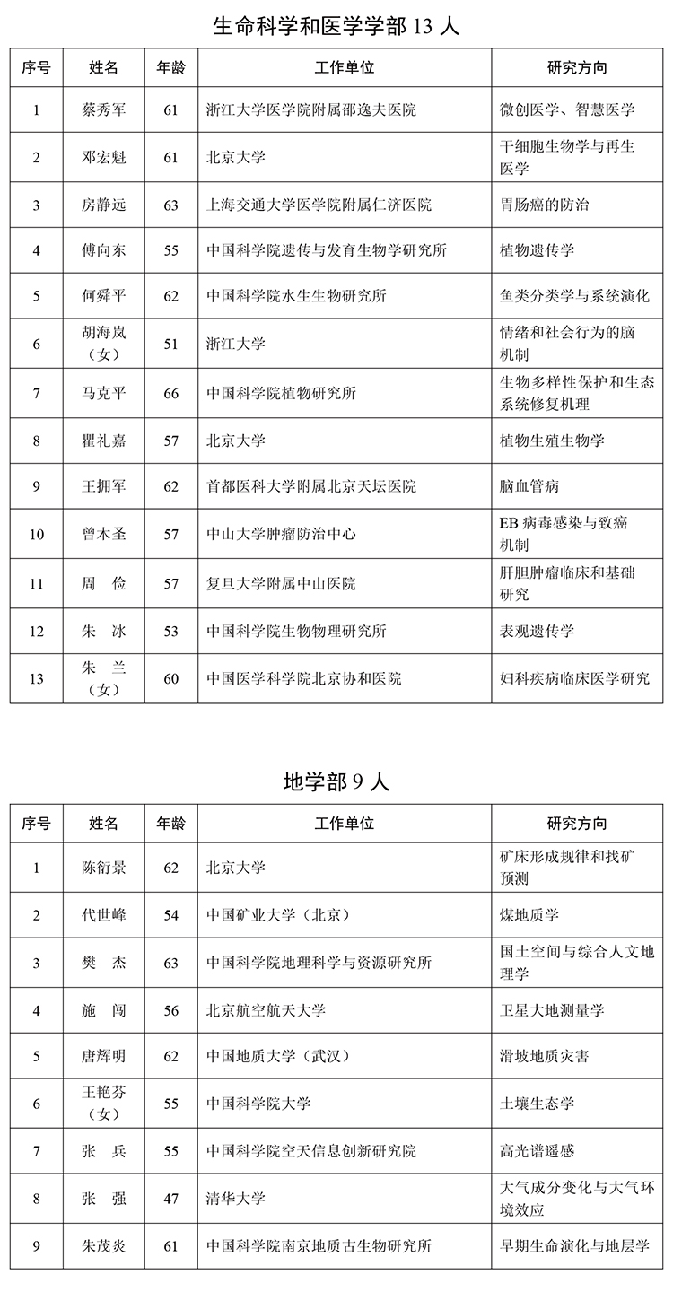 中国科学院、中国工程院11月21日公布2025年院士增选结果,分别选举产生中国科学院院士73人,中国工程院院士71人。