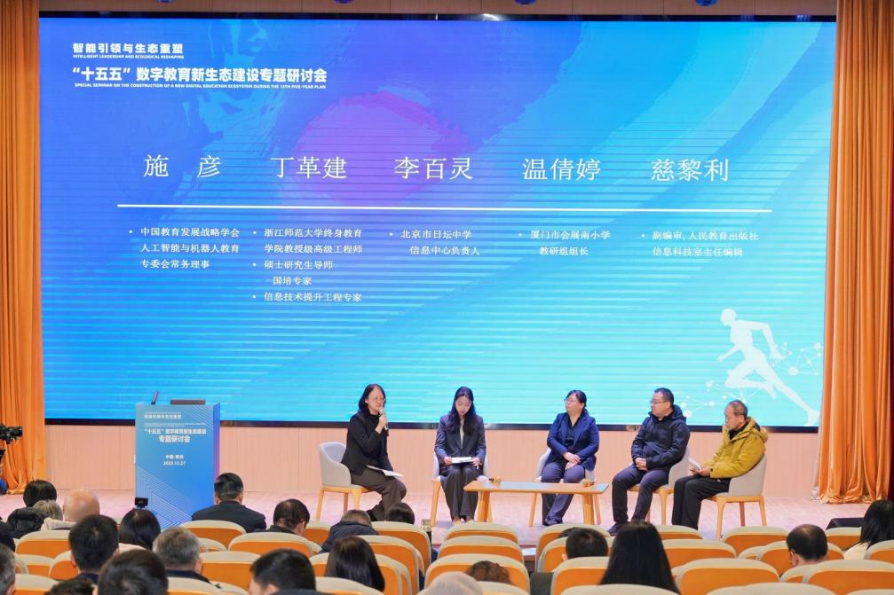 在国家“十四五”规划圆满收官、“十五五”规划谋篇布局的关键时期,为深入贯彻落实习近平总书记关于“推进人工智能全学段教育和全社会通识教育,源源不断地培养高素质人才”的重要指示精神,积极响应国家教育数字化战略行动部署,“‘十五五’数字教育新生态建设专题研讨会”12月27日在南京市雨花台区南站中小学召开。会议由中国教育发展战略学会教育政策与规划专业委员会与江苏省教育信息化与数据管理中心联合主办,以“智能引领与生态重塑”为主题,汇聚来自京、沪、渝,以及冀、晋、蒙、浙、皖、闽、赣、鲁、湘、粤、桂、琼、川、甘等17个省(区、市)教育行政部门负责人、高校专家学者及一线校长教师300多人参会。与会代表聚焦人工智能时代教育发展的根本性、前瞻性问题,重点围绕“未来人才核心素养如何界定”“教师角色与能力如何重塑”“技术应用如何兼顾公平与伦理”等议题展开深入研讨,共商发展路径,凝聚行动共识。