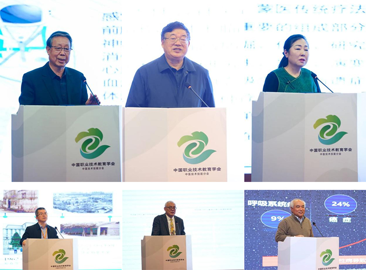 会议期间,同步举办了中国职业技术教育学会中医技术技能分会首届学术会议,欧亚科学院院士、岐黄工程首席科学家、广州中医药大学原校长、北京中医药大学副校长王伟和天津医学高等专科学校党委副书记、校长张彦文共同主持了本次学术会议,会议集中展现了中医药领域的创新成果与发展蓝图。中国中医科学院首席研究员、世界针灸学会联合会主席刘保延,天津中医药大学副校长郭义,中国中医科学院首席研究员、内蒙古医科大学原党委书记乌兰,安徽中医药高等专科学校党委副书记、校长韩军,上海交通大学中国书法文化国际传播研究所所长周斌,云南农业大学原校长盛军等专家分别作了学术报告,内容涵盖了航天中医药研究、中医药标准制定、民族医药技术、基层中医药技术技能人才培养、中医养生等方面,共同勾勒出中医药守正创新、跨界融合的当代发展路径。